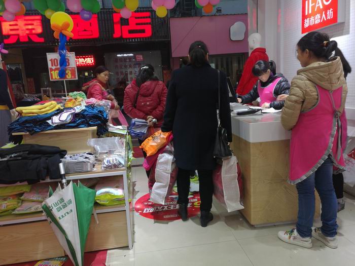 活动当天不是赶集也不是周末人流也少,但顾客都是直奔我们店,一来就带上几套保暖夹棉等等,这也离不开柳姐平时的经营,也很感谢顾客对于都市恋人坊的青睐!